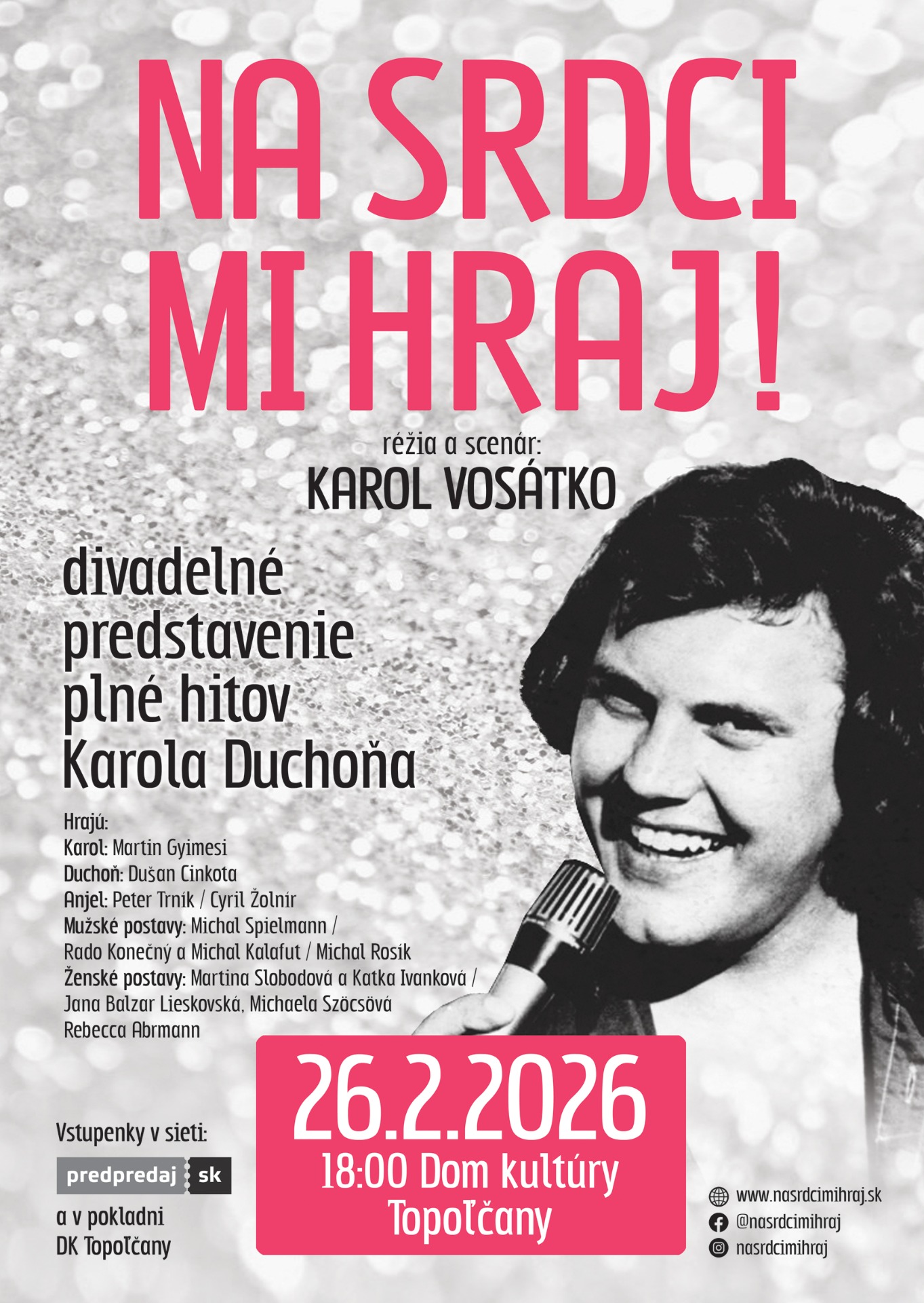 Dátum: štvrtok, 26.február 2026 , 18.00h Miesto: Dom Kultúry Topoľčany Vstupné: 22. eur