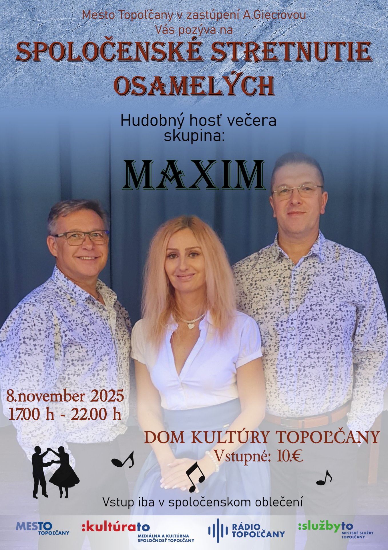 Dátum: sobota, 8. november 2025 , 17.00h - 22.00h Miesto: Kultúrny dom Topoľčany Vstupné: 10 eur